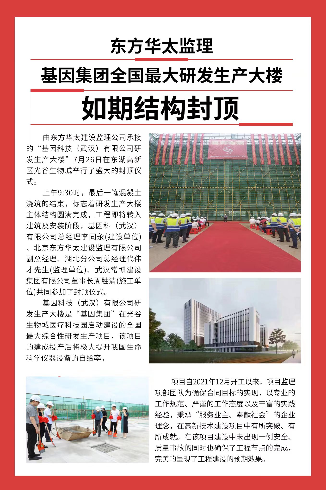 東方華太監理 基因集團全國最大研發生產大樓 如期結構封頂