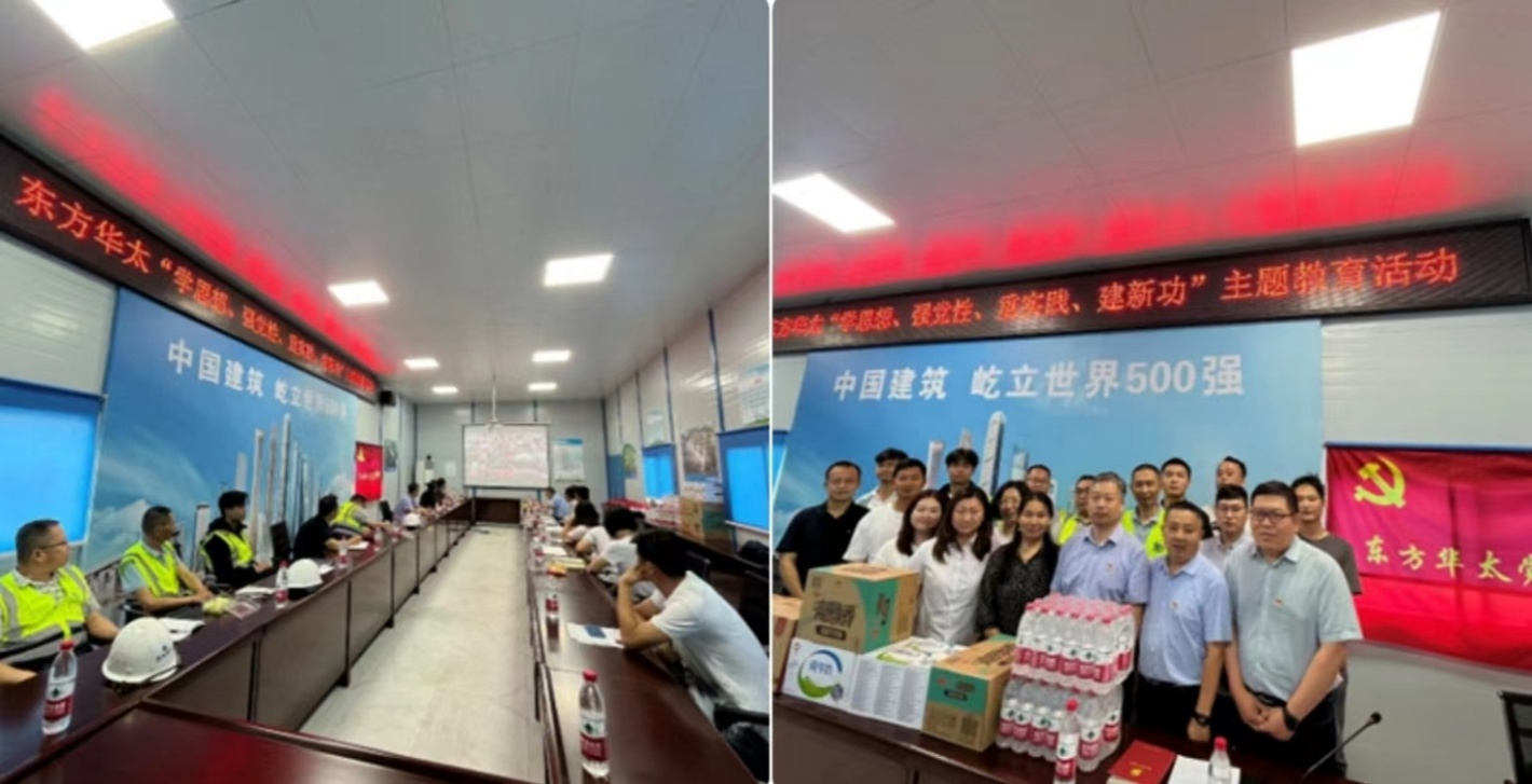 公司黨支部于2023年6月17日組織全體黨員、入黨積極分子及項目群眾代表等前往公司負責承監的鄂州市臨空經濟區星級酒店項目開展迎七一“學思想、強黨性、重實踐、建新功”主題教育與項目聯建活動。